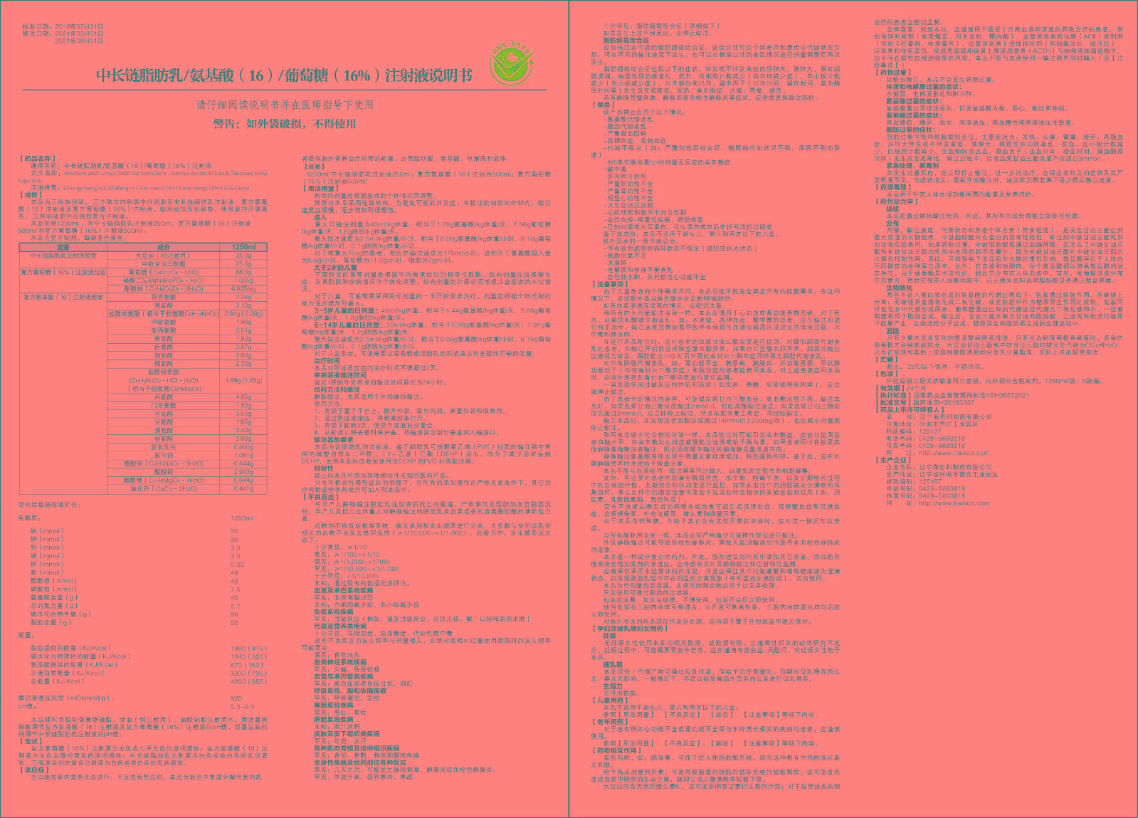 【通用名】中長(zhǎng)鏈脂肪乳氨基酸(16)葡萄糖(16%)注射液
