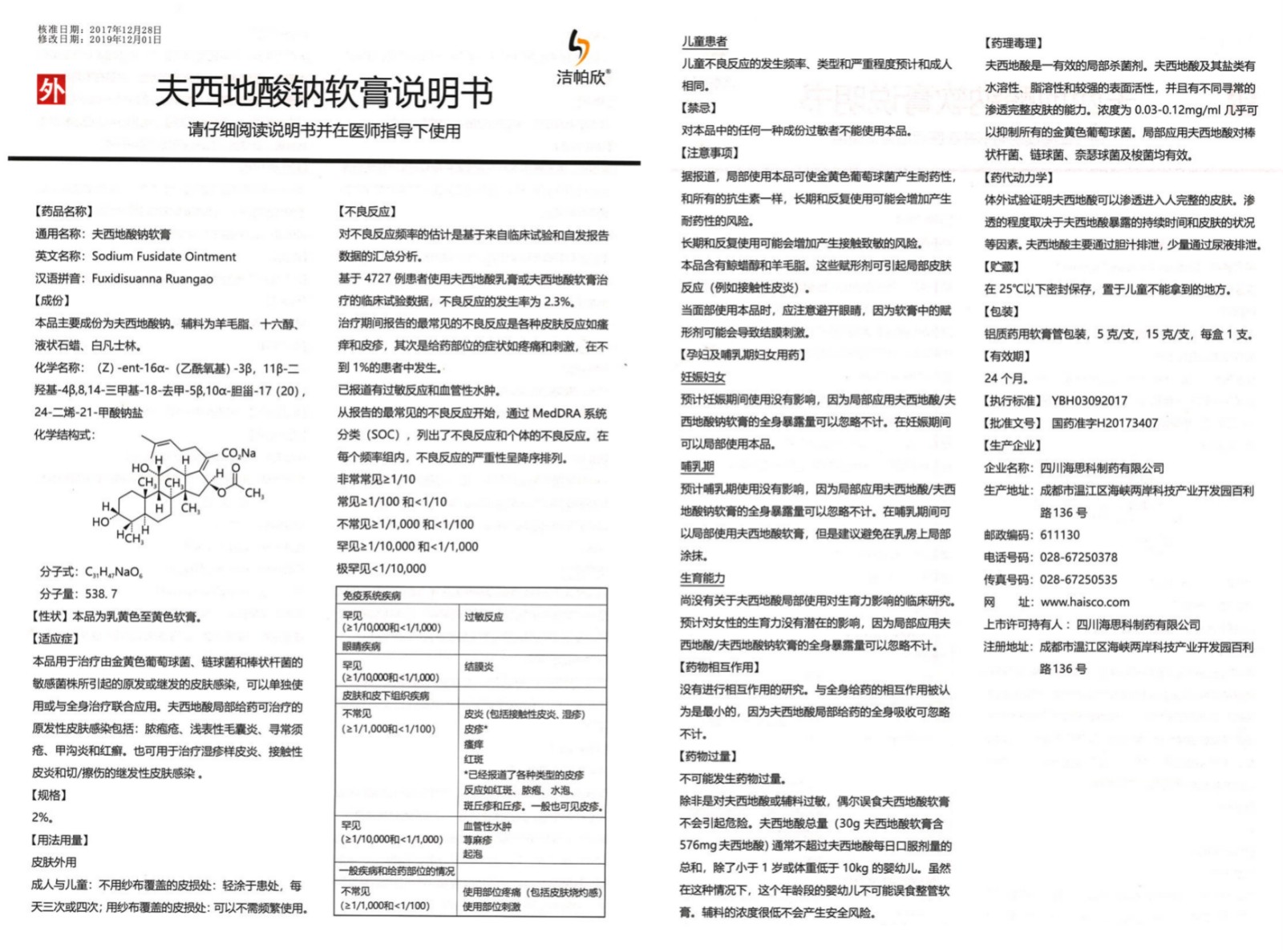 本品用于治療由金黃色葡萄球菌、鏈球菌和棒狀桿菌的敏感菌株所引起的原發(fā)或繼發(fā)的皮膚感染,可以單獨使用或與全身治療聯(lián)合應用。夫西地酸局部給藥可治療的原發(fā)性皮膚感染包括:膿皰瘡、淺表性毛囊炎、尋常須瘡、甲溝炎和紅癬。也可用于治療濕疹樣皮炎、接觸性皮炎和切/擦傷的繼發(fā)性皮膚感染。
