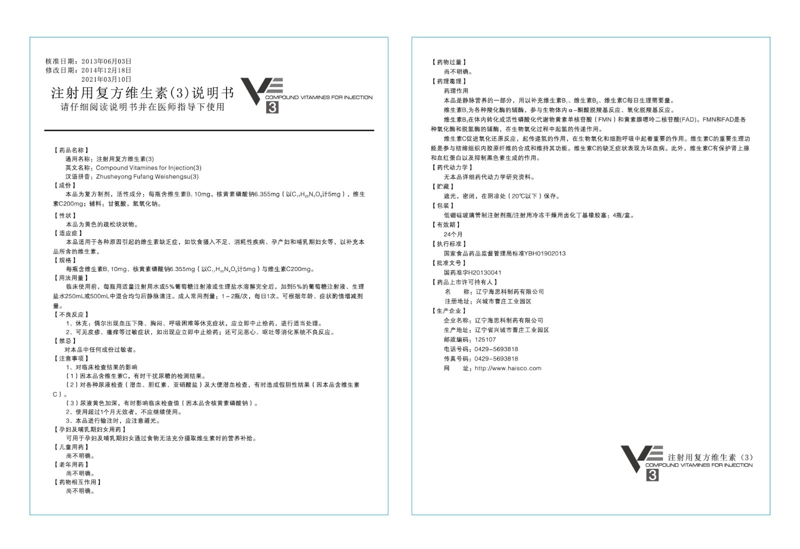 【通用名】注射用復(fù)方維生素(3)